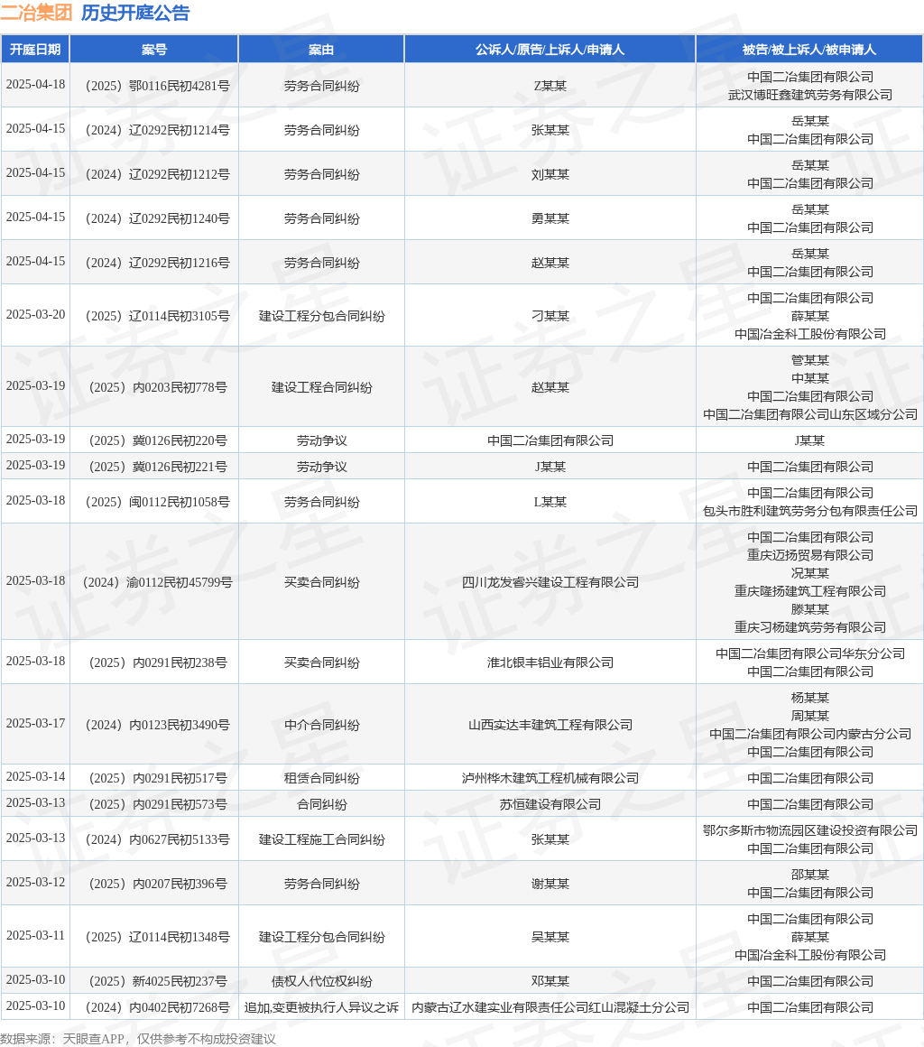 本站消息,根据天眼查APP显示,近日公布了一则中国二冶集团有限公司作为被告/被上诉人的开庭公告,详细内容如下: